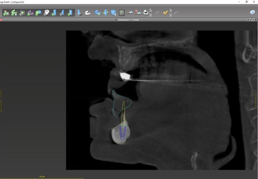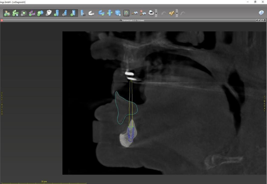 Dois tipos de arquivos são necessários para o planejamento digital e a confecção de guias cirúrgicos. Os scanners intraorais adquirem imagens tridimensionais, que após sua completa varredura, serão salvas em arquivos digitais no formato STL (Standard Triangle Language). Por outro lado, os scanners CBCT (Cone Beam Computed Tomography) produzem imagens 3D fidedignas de estruturas ósseas no formato DICOM (Digital Imaging and Communication in Medicine)[5]. A CBCT possui uma dose de radiação menor (92–118 μSv) do que a TC (860 μSv), portanto, é frequentemente utilizada no planejamento de implantes dentários[6]. Tanto a TC quanto a CBCT, são armazenadas no formato universal DICOM. Além dos dados de imagem, informações geométricas e práticas (como detalhes e configurações de aquisição) estão incluídas no arquivo DICOM[7]. As imagens digitais obtidas através do arquivo DICOM obtido pela CBCT são inseridas em um software de desenho assistido por computador (CAD), onde serão confeccionados os modelos digitais e protéticos e, posteriormente, impressos através da manufatura aditiva assistida por computador (CAM)[8].