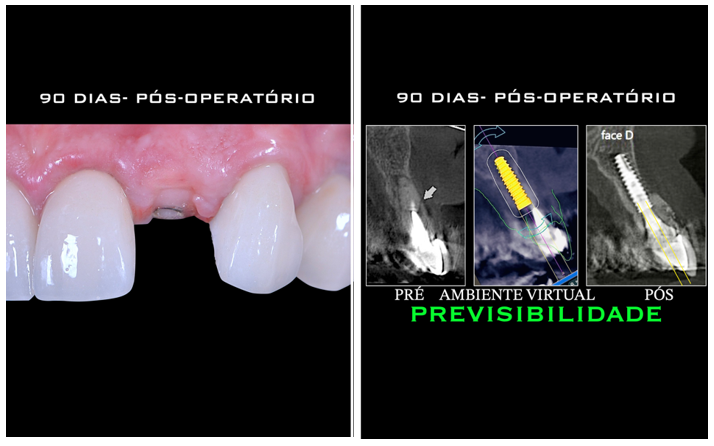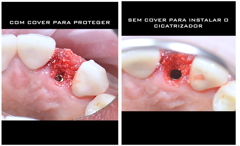 – quando da instalação do implante imediato, o alvéolo fresco é totalmente fechado com o implante, sendo que o biomaterial, o coágulo e o cicatrizador personalizado acabam mantendo a homeostase da região, bem como a manutenção do arcabouço arquitetônico do processo alveolar e peri-implantar;