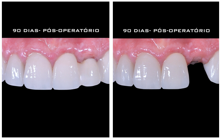 Pudemos reparar o perfil de emergência do elemento 22 após 90 dias de instalação imediata, através de uma cirurgia guiada prototipada. Após a remoção do cicatrizador, confeccionamos um provisório para finalizar o design e maturação do perfil de emergência por mais 45 dias para, posteriormente, realizar o escaneamento da coroa definitiva.