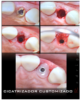 A função do cicatrizador personalizado na técnica de implante imediato tem diversos benefícios. Dentre eles, serve como barreira para auxiliar e acomodar tanto o coágulo e o biomaterial no alvéolo ou GAP entre o implante e o remanescente da tábua vestibular e do tecido mole; conduz a formação da zona de transição da estética branca e rosa (zona do perfil de emergência); dispensa a necessidade de sutura e de descolamento do periósteo; evita a deiscência de sutura; dispensa a necessidade de reabertura ou de uma segunda etapa cirúrgica; reduz o tempo total para confecção do trabalho definitivo; reduz a morbidade por ter de fazer somente um procedimento cirúrgico e promove o design da zona crítica e subcrítica.