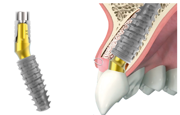 Nesse contexto, os pilares angulados com retenção aparafusada representam uma solução eficiente, pois corrigem angulações desfavoráveis do conduto do parafuso e sua interferência com a anatomia da coroa. Assim, ampliam a possibilidade de utilização de coroas aparafusadas, mesmo em casos de colocação imediata de implantes em sítios de extração frescos.